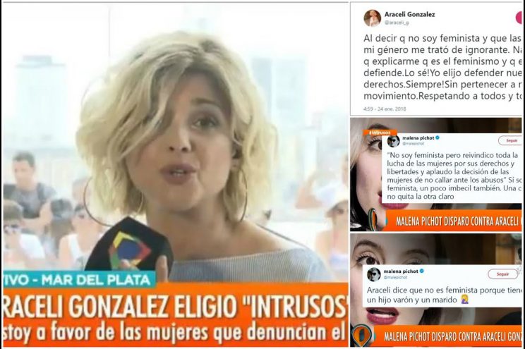 La saga no terminó ahí porque la producción de Intrusos, encabezada por la gerenta de programación de América Liliana Parodi, se hizo eco de lo que sucedía en las redes y decidió invitar al piso a Florencia Freijo, politóloga y activista feminista, quien tuvo tiempo para hablar y explicar con claridad algunos ejes del movimiento feminista y de sus luchas. También llamaron por teléfono a Araceli y armaron una conversación entre ellas. Araceli escuchó a Freijo, dijo que estaba muy enojada por los insultos que había recibido en esos días, dio cuenta de las múltiples maneras que el machismo afectó su vida —cosa que viene haciendo hace un tiempo— y contó, entre otras cosas, que no fue acosada en su carrera profesional pero sí abusada a los cinco años por un adulto que la manoseó. Le agradeció a Freijo sus palabras y afirmó: “si eso es el feminismo, entonces soy feminista”.[3]